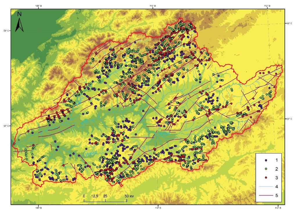 Выделение источников питания и отнесение наледей бассейна р. Уды к зонам развития разных типов таликов отличается определенной условностью и требует дополнительных исследований, так как природные, в т. ч. мерзлотно-геологические, условия территории весьма разнообразны. Кроме того, использование геоинформационных методов ограничено объемами баз данных, имеющихся в распоряжении. Это касается, в частности, сведений о геологии, тектонике и геокриологии. На геологических картах обозначено значительно больше разрывных нарушений, чем есть в оцифрованных базах данных, распространение ММП не всегда совпадает с имеющимися данными, существуют разные схемы.