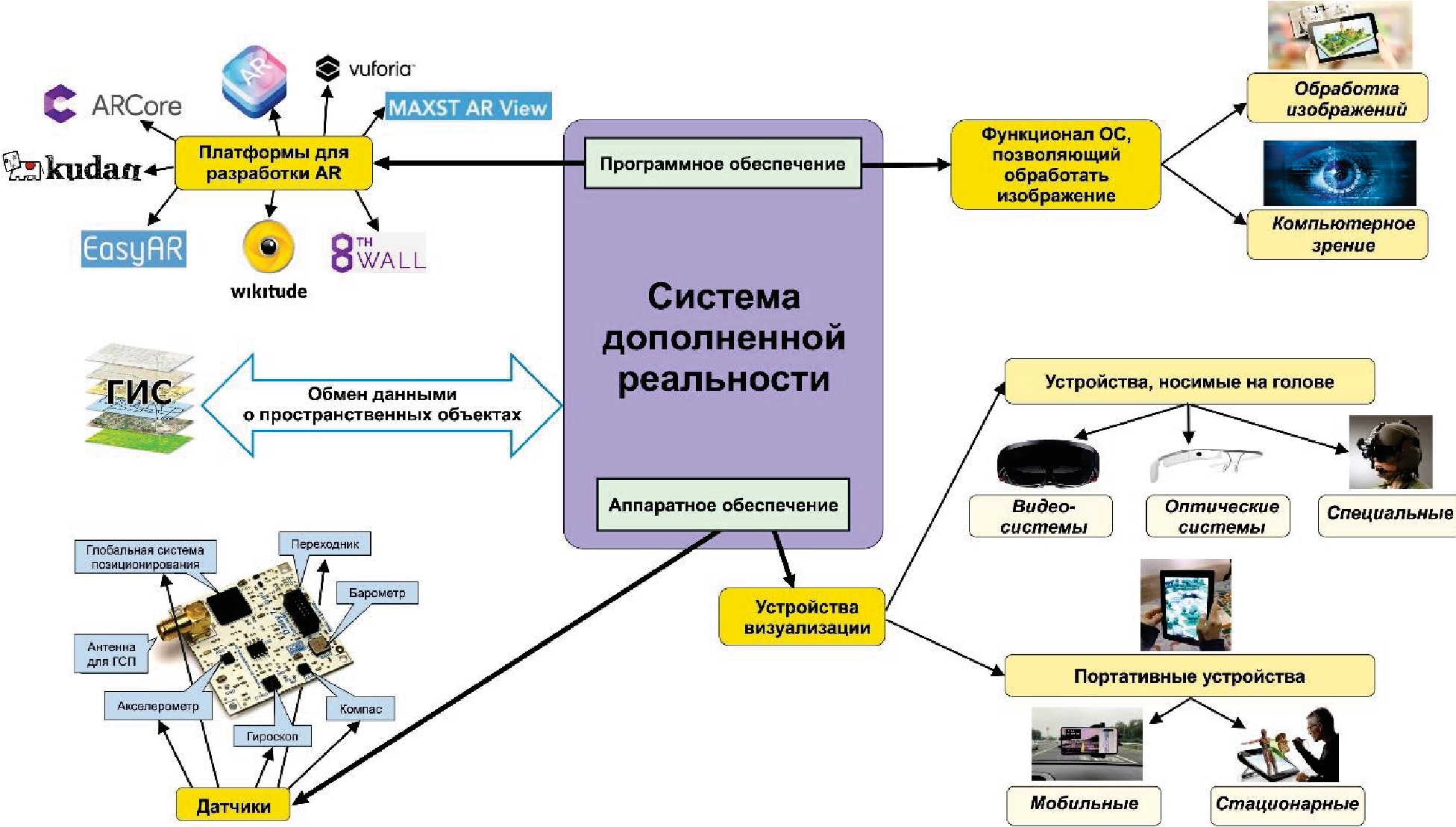 Программный комплекс включает в себя платформы для разработки картографической AR [12] и функционал операционной системы, которые повышают качество отображения элементов дополненной реальности.