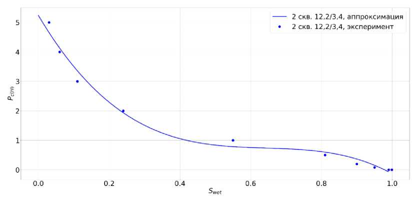 Рис. 1. Капиллярная кривая для рассматриваемой смеси КНГКМ с f=12,2 % и k=3,4×10–3 мкм2