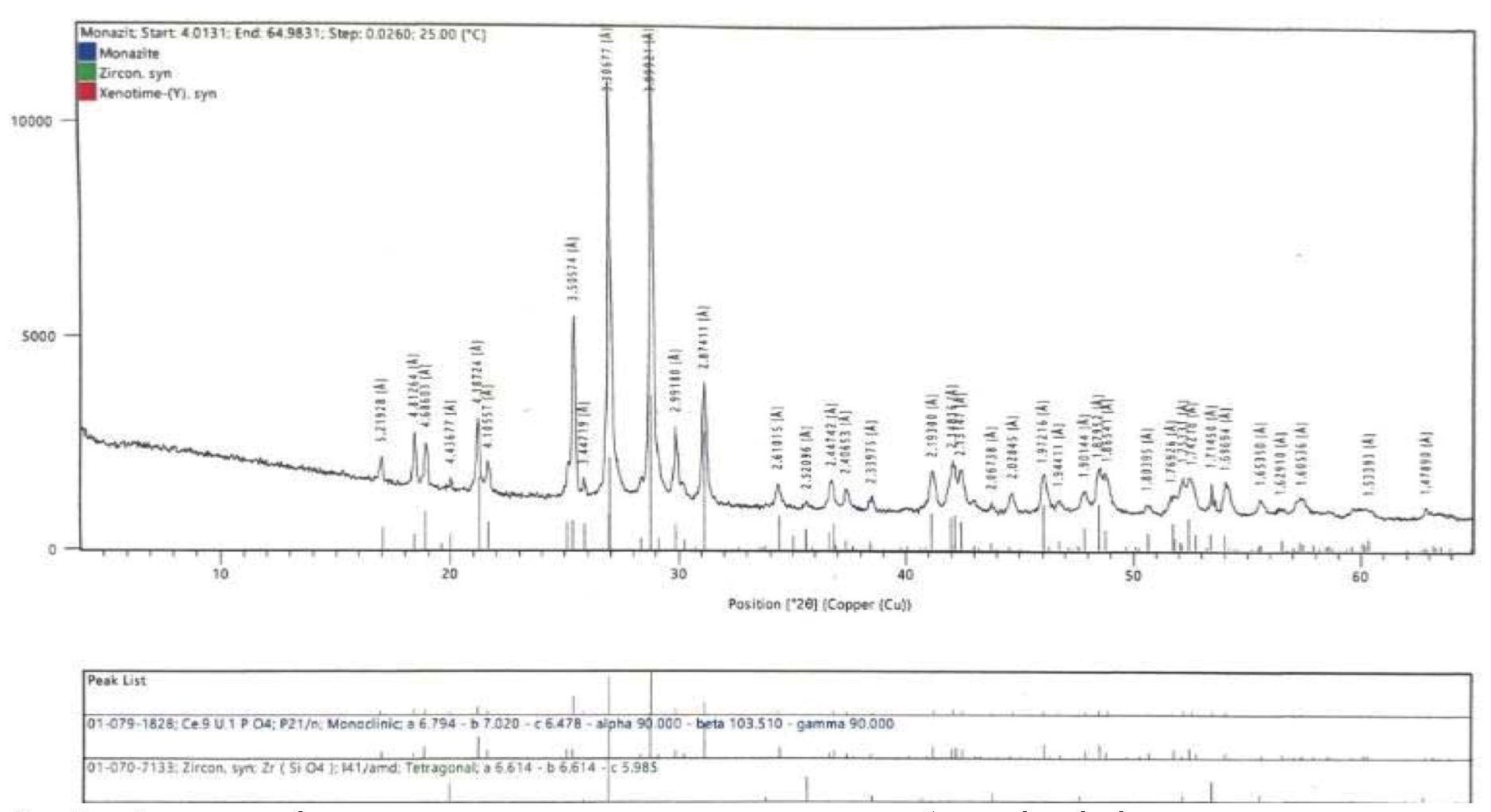 Рис. 3. Спектр исходного монацитового концентрата, полученный методом дифракции рентгеновских лучей