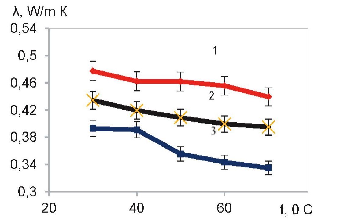 Представленные на рис. 1–3 материалы позволяют сделать вывод о том, что вид технического углерода по-разному влияет на различные теплофизические характеристики композиционного материала. В частности, наблюдались следующие эффекты: