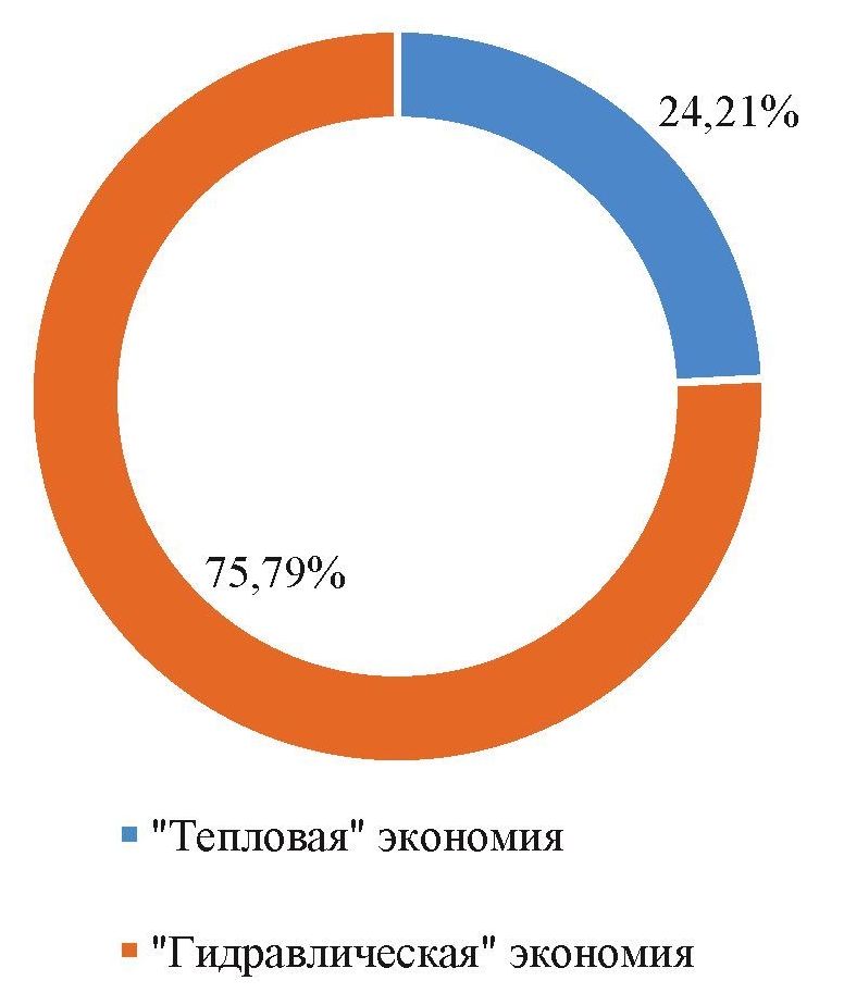 Рис. 5. Экономический вклад тепловой и гидравлической составляющей в снижение затрат на перекачку