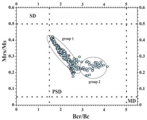 Fig. 4. Day–Dunlop plot [13, 26] for samples taken from core column #3