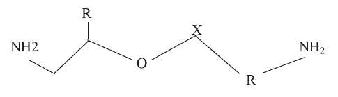 Олигомерные и полимерные амины. Библиографический анализ показывает, что во избежание необходимости решения экологических проблем, задач по улучшению свойств мономерных соединений, ингибирующих набухание глин, активно проводятся исследования по применению в полевых условиях различных олигомерных аминных ингибиторов глин. Известно, что эти олигомерные амины с двумя–четырьмя азотными функциональными группами действуют аналогично мономерным аминам из-за катионного характера и размера. Суть в том, что они проникают в глинистые пластинки и препятствуют проникновению молекул воды в глину и ее гидратации. Однако олигомерные амины, в отличие от мономерных аминов, имеют одно главное преимущество. В частности, они обеспечивают лучшую стабилизацию глины благодаря нескольким активным центрам, адсорбированным на глине одновременно, и, следовательно, менее восприимчивы к обратным эффектам при адсорбции вещества. Олигомерные амины обеспечивают большую «гибкость» при разработке и оптимизации молекулы для желаемого применения. Например, полиэфирамины (рис. 7) были разработаны и оптимизированы для их применения в качестве ингибиторов глин в начале 2000-х гг.