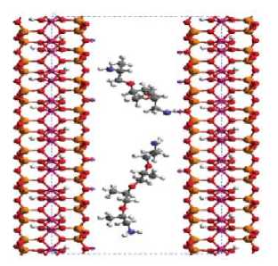 Уникально оптимизированная молекулярная структура этих диаминов идеально помещается между пластинками глины (рис. 8) и значительно снижает склонность глины впитывать воду из жидкой фазы. Известно [95–98], что в последние годы различные олигомерные катионные амины интенсивно внедрялись в производство буровых растворов в качестве ингибиторов образования глин.