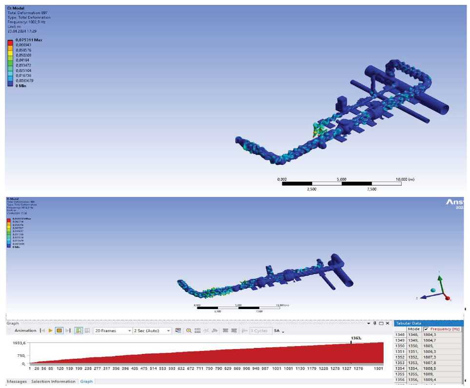 Рис. 4. Модальный анализ технологической обвязки