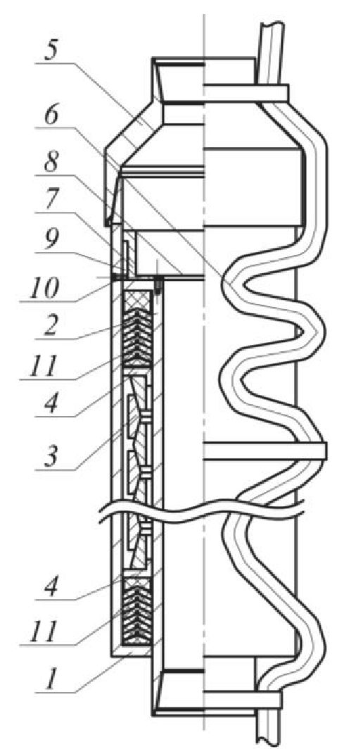 В нефтяной отрасли хорошо известны и отработаны в применении различные компенсаторы термобарических изменений длины колонны труб [29, 30]. Они предназначены для компенсации хода колонны труб вниз и/или вверх с одновременным гашением колебаний, а также для компенсации температурных деформаций, возникающих в колонне НКТ вследствие изменений температуры скважинной среды.