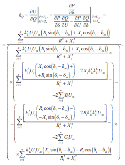 Выражения (11) и (12) позволяют проанализировать зависимости коэффициентов реакции сети от схемных и режимных параметров, хотя на практике их удобно определять путём вычисления отношений приращений напряжения в узле нагрузки, возникающих при малых приращениях мощности в узле нагрузки [18, 22].