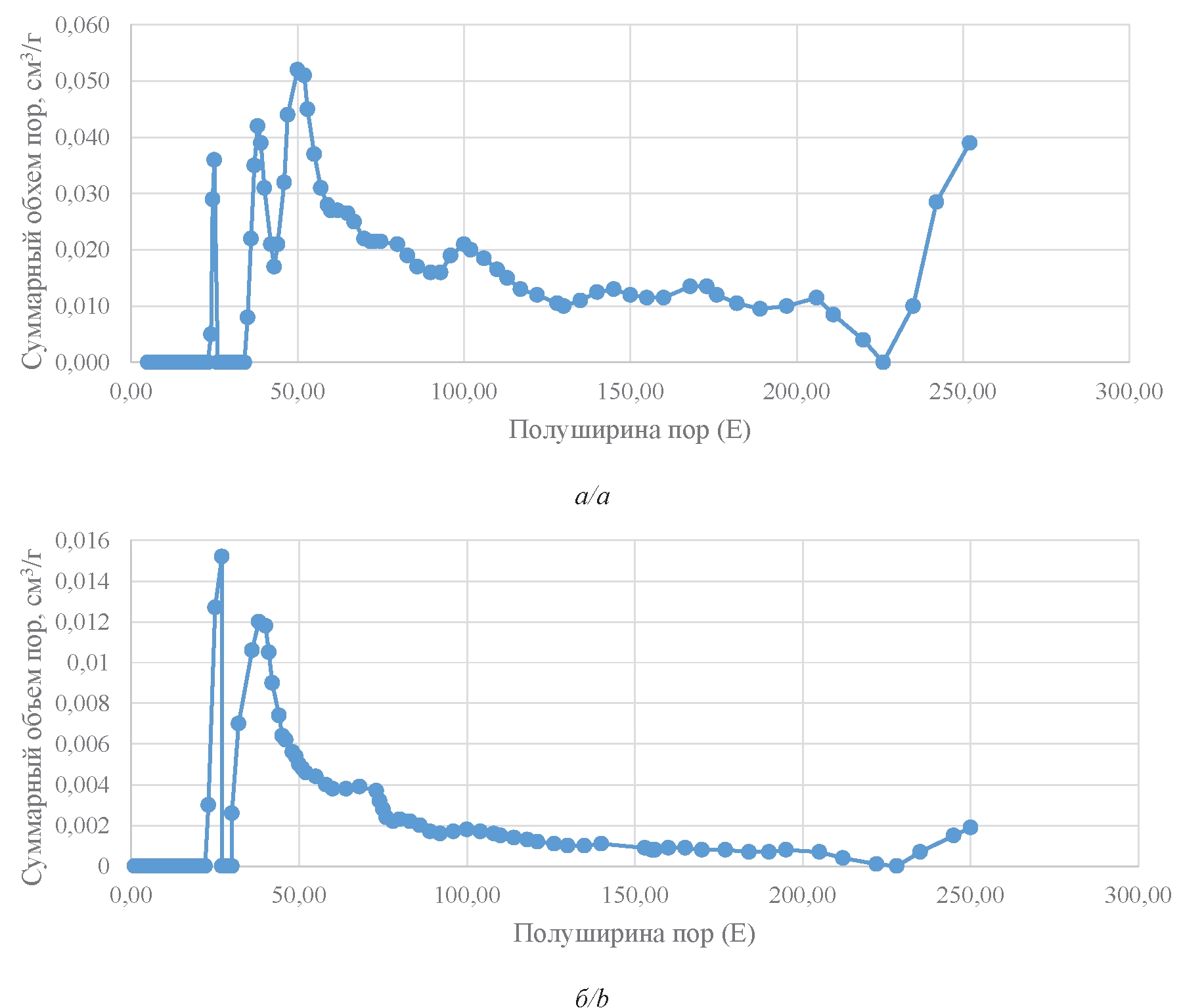 Vобщ | Суммарный объем пор Total pore volume | см3/г cm3/g | 0,186 | 0,033 |