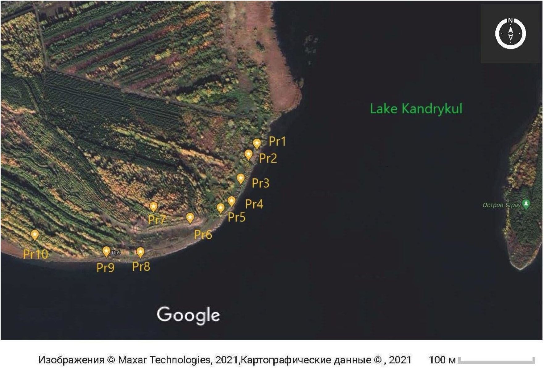 The area of our research is the territory on the shore of the second largest lake of Republic of Bashkortostan – Kandrykul. It lies in a lobe between two low northeastern spurs of the Bugulma-Belebeevskiy upland in the basin of the Usen river. The lake basin is embedded in Ufa sandstones, clay and marly rocks, below which lie Kungur gypsum and anhydrite [11].