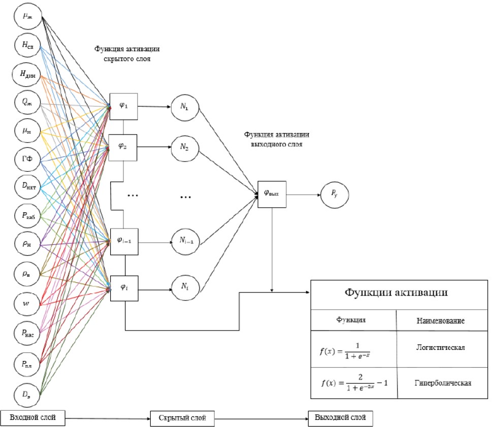Тогда с учетом формулы (5) вес штанг может определяться как функция от устьевого давления, задаваемая в нейронной сети с зависимыми входными параметрами