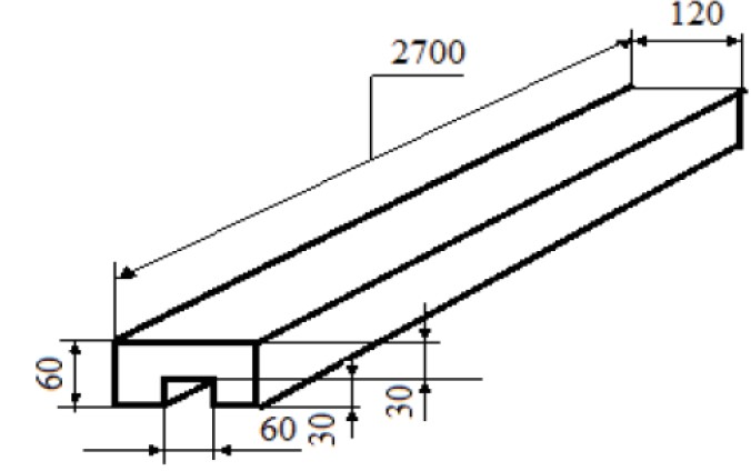 Было проведено исследование условий получения, составов и свойств минеральных швеллеров на основе техногенного ангидритового вяжущего [20]. Наиболее практичным является минеральный ангидритовый швеллер с габаритными размерами 2700×120×60 мм и толщиной ребер и полочки, равной 30 мм (рис. 7).
