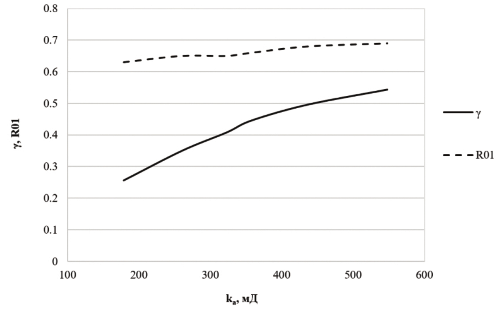 Неоднородность проницаемости слоистого коллектора может быть охарактеризована коэффициентом Дикстры Парсонса или коэффициентом вариации проницаемости [29]. Формальное представление вариации включает логарифмическую среднюю проницаемость и проницаемость, которая определяется с вероятностью 84 %: