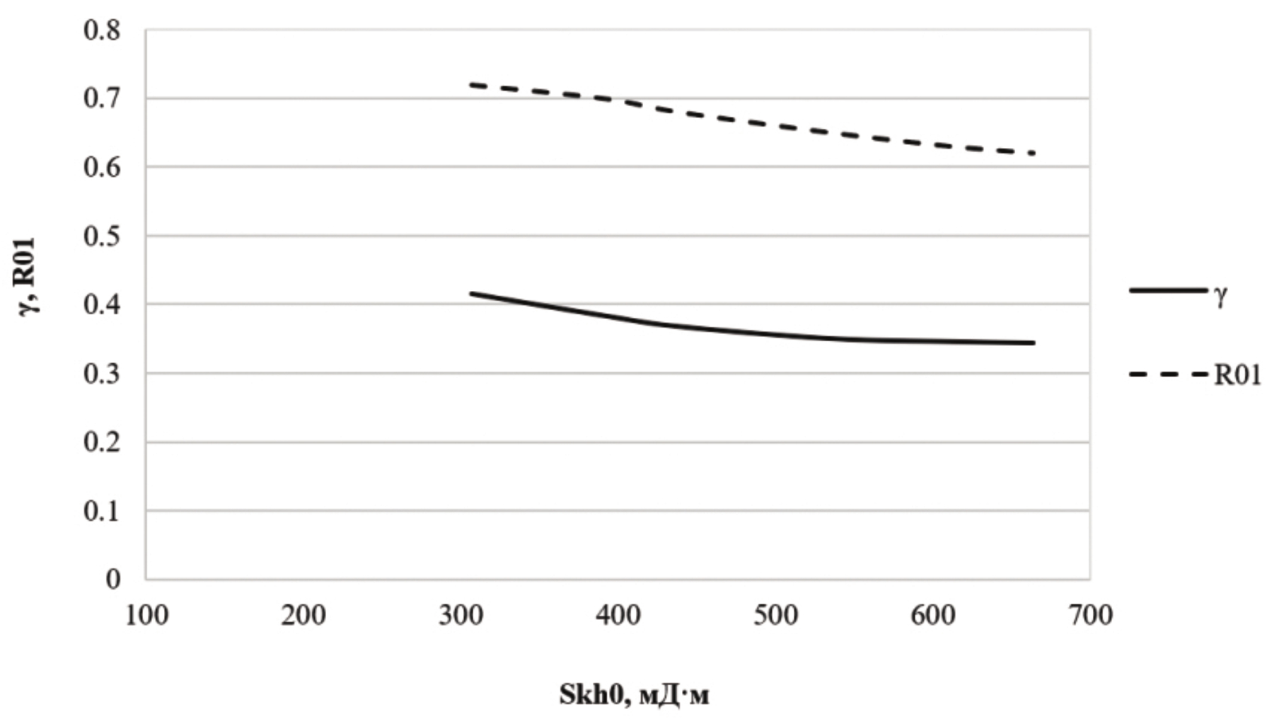 где безразмерная проницаемость после обработки, а доля толщины -го пропластка в общей толщине пласта .