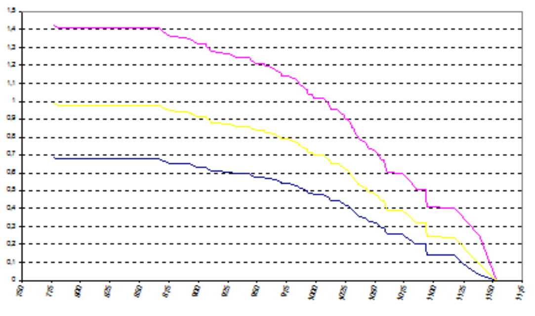 T=1128 MathType@MTEF@5@5@+= feaahGart1ev3aaatCvAUfeBSjuyZL2yd9gzLbvyNv2CaerbuLwBLn hiov2DGi1BTfMBaeXatLxBI9gBaerbd9wDYLwzYbItLDharqqtubsr 4rNCHbGeaGGj0Jf9crFfpeea0xh9v8qiW7rqqrFfpeea0xe9Lq=Jc9 vqaqpepm0xbba9pwe9Q8fs0=yqaqpepae9pg0FirpepeKkFr0xfr=x fr=xb9adbaqaaeGaciGaaiaabeqaamaabaabaaGcbaGaamivaiaai2 dacaaIXaGaaGymaiaaikdacaaI4aaaaa@3C9B@ ; μ 1 =1 MathType@MTEF@5@5@+= feaahGart1ev3aaatCvAUfeBSjuyZL2yd9gzLbvyNv2CaerbuLwBLn hiov2DGi1BTfMBaeXatLxBI9gBaerbd9wDYLwzYbItLDharqqtubsr 4rNCHbGeaGGj0Jf9crFfpeea0xh9v8qiW7rqqrFfpeea0xe9Lq=Jc9 vqaqpepm0xbba9pwe9Q8fs0=yqaqpepae9pg0FirpepeKkFr0xfr=x fr=xb9adbaqaaeGaciGaaiaabeqaamaabaabaaGcbaGaeqiVd02aaS baaSqaaiaaigdaaeqaaOGaaGypaiaaigdaaaa@3C30@ ; μ 2 =1,37 MathType@MTEF@5@5@+= feaahGart1ev3aaatCvAUfeBSjuyZL2yd9gzLbvyNv2CaerbuLwBLn hiov2DGi1BTfMBaeXatLxBI9gBaerbd9wDYLwzYbItLDharqqtubsr 4rNCHbGeaGGj0Jf9crFfpeea0xh9v8qiW7rqqrFfpeea0xe9Lq=Jc9 vqaqpepm0xbba9pwe9Q8fs0=yqaqpepae9pg0FirpepeKkFr0xfr=x fr=xb9adbaqaaeGaciGaaiaabeqaamaabaabaaGcbaGaeqiVd02aaS baaSqaaiaaikdaaeqaaOGaaGypaiaayIW7caaMe8UaaGjcVlaaigda caaISaGaaG4maiaaiEdaaaa@4314@  и d n x = ;x 1 N n u 2 d M n u;1 . MathType@MTEF@5@5@+= feaahGart1ev3aaatCvAUfeBSjuyZL2yd9gzLbvyNv2CaerbuLwBLn hiov2DGi1BTfMBaeXatLxBI9gBaerbd9wDYLwzYbItLDharqqtubsr 4rNCHbGeaGGj0Jf9crFfpeea0xh9v8qiW7rqqrFfpeea0xe9Lq=Jc9 vqaqpepm0xbba9pwe9Q8fs0=yqaqpepae9pg0FirpepeKkFr0xfr=x fr=xb9adbaqaaeGaciGaaiaabeqaamaabaabaaGcbaGaamizamaaBa aaleaacaWGUbaabeaakmaabmaabaGaamiEaaGaayjkaiaawMcaaiaa i2dadaWdrbqabSqaamaajadabaGaeyOeI0IaeyOhIuQaaG4oaiaadI haaiaawIcacaGLDbaaaeqaniabgUIiYdGcdaqadaqaaiaaigdacqGH sislcaWGobWaaSbaaSqaaiaad6gaaeqaaOWaaeWaaeaacaWG1bGaey OeI0cacaGLOaGaayzkaaaacaGLOaGaayzkaaWaaWbaaSqabeaacqGH sislcaaIYaaaaOGaamizaiaad2eadaWgaaWcbaGaamOBaaqabaGcda qadaqaaiaadwhacaaI7aGaaGymaaGaayjkaiaawMcaaiaai6caaaa@57E9@  Эти полосы для данных объема n=97 с использованием оценок (1) приведены на рис. 5 MathType@MTEF@5@5@+= feaahGart1ev3aqatCvAUfeBSjuyZL2yd9gzLbvyNv2CaerbuLwBLn hiov2DGi1BTfMBaeXatLxBI9gBaerbd9wDYLwzYbItLDharqqtubsr 4rNCHbGeaGqiVu0Je9sqqrpepC0xbbL8F4rqqrFfpeea0xe9Lq=Jc9 vqaqpepm0xbba9pwe9Q8fs0=yqaqpepae9pg0FirpepeKkFr0xfr=x fr=xb9adbaqaaeGaciGaaiaabeqaamaabaabaaGcbaqefmuySLMyYL gaiuaajugGbabaaaaaaaaapeGaa83eGaaa@3A94@ 7.