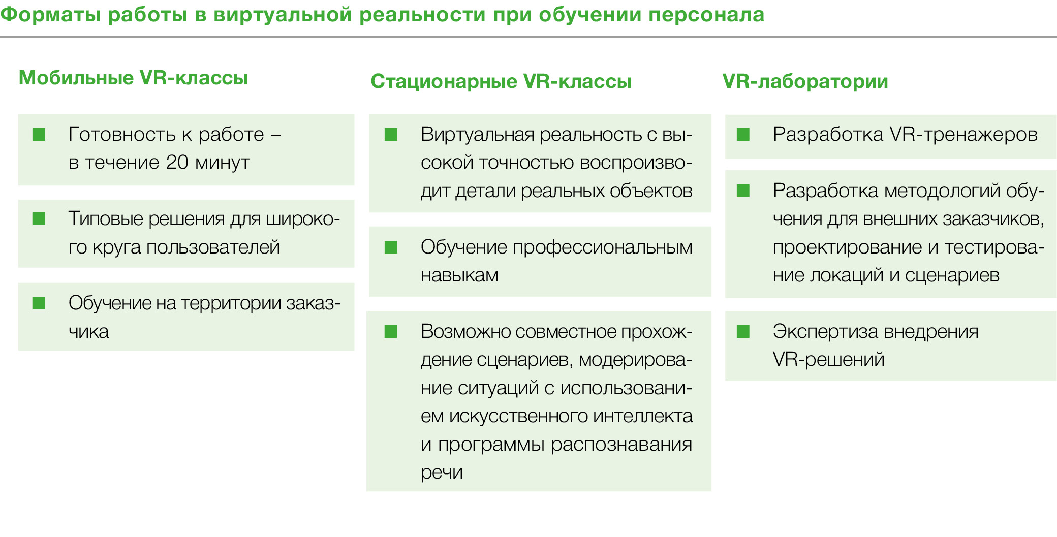 Рис. 1 Форматы работы в виртуальной реальности при обучении персонала