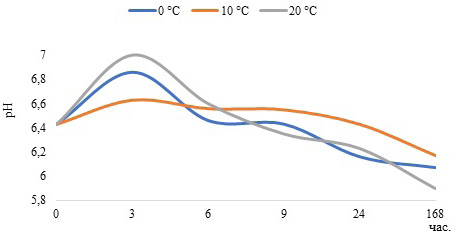 На рис. 2 приведена зависимость водородного показателя от температуры и времени контакта в системе сорбент − сорбат.