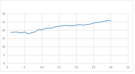 Распределение температуры воды в г. Сочи в период с 1 по 30 июня представлено на рис. 2 и в табл. 1 [11].