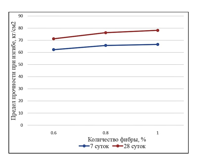 Анализ результатов испытаний первой серии образцов показал, что с увеличением количества фибры прочность на изгиб начинает возрастать, при этом не уменьшая прочность при сжатии. Также был выявлен ряд проблем: