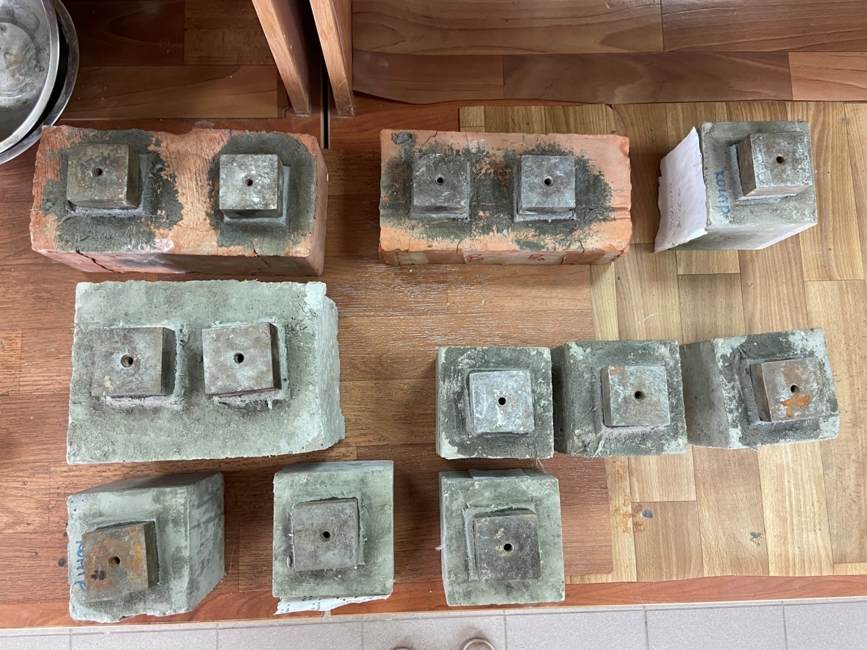 Рис. 13. Образцы с фиброй и контрольным составом без фибры перед испытанием на адгезионную прочность