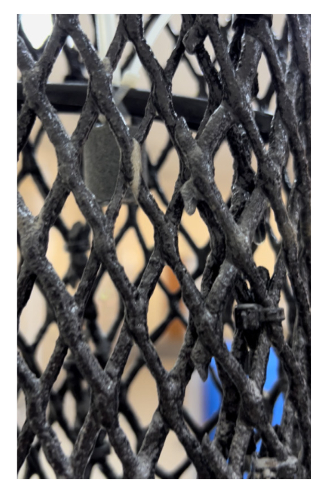 При повышении температуры сточных вод до 45 °С в биореакторе с биокультурой «Русский Богатырь № 4» наблюдалось отсутствие бактериального ила и активный рост иммобилизованной биокультуры, также имело место заполнение сот ББЗ (рис. 6).