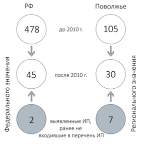 На момент вступления в силу закона «Об объектах культурного наследия (памятниках истории и культуры) народов Российской Федерации» от 25 июня 2002 г. № 73-ФЗ в стране числилось 478 исторических поселений. 29 июля 2010 г. был издан совместный приказ Минкультуры РФ № 418 и Минрегионразвития РФ № 339, установивший перечень исторических поселений, состоящий из 40 городов и сельских населённых пунктов (на текущий момент в перечне исторических поселений страны 45 городов и сельских населённых пунктов). Данные поселения имеют статус федерального значения. Приказ был связан с Постановлением правительства № 2 от 16 января 2010 г., утверждавшим порядок согласования планирования и застройки исторических поселений. Усложненная процедура согласования градостроительной документации для исторических поселений сказалась на том, что их число, опять же по субъективным причинам, существенно уменьшилось. С тех пор многие регионы страны вступили на путь придания историческим поселениям, ранее входившим в федеральный список, статуса поселений регионального значения. С каждым годом число исторических поселений регионального значения в нашей стране неуклонно растет. Имеются примеры появления малых исторических поселений, которые ранее не имели такового статуса (рис. 1).