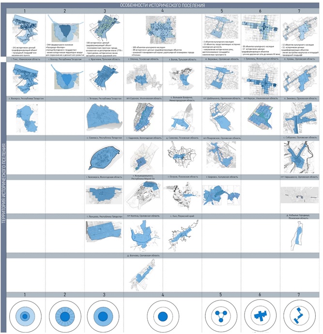 Выявлено семь методических подходов к определению границ малых исторических поселений в зависимости от планировочной структуры и историко-культурной ценности наследия: