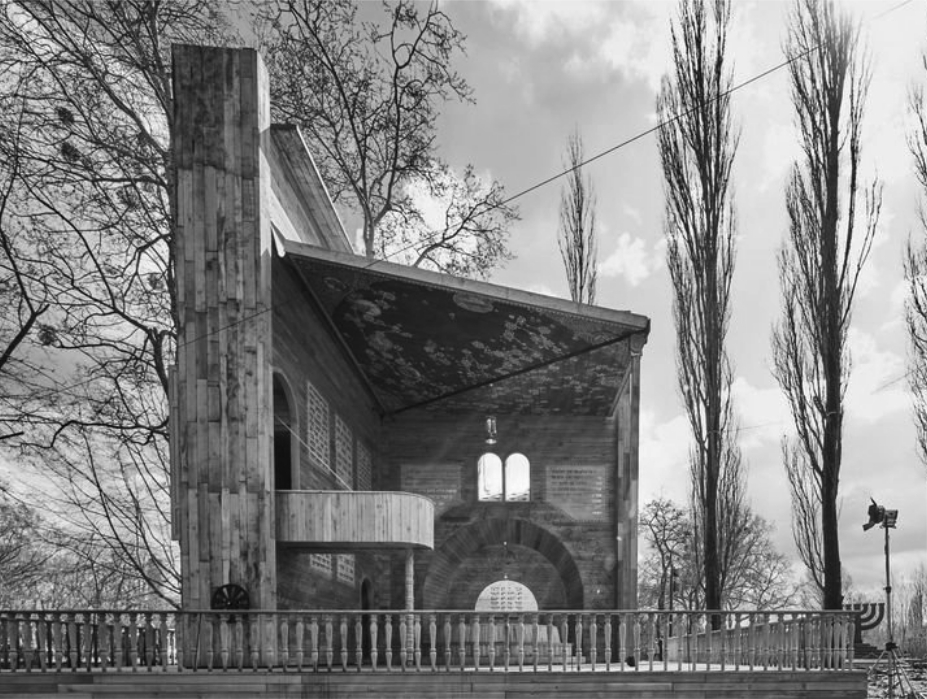 Примером адаптивной архитектуры является синагога «Место для размышлений» в Киеве (Украина, 2021 г., рис. 4). Она расположена на территории парка и мемориального центра «Бабий Яр», посвященного памяти жертв Холокоста. Синагога представляет собой мемориальный объект и находится возле памятника «Менора» [6]. До 1969 г. здесь были еврейское и православное кладбища [7].