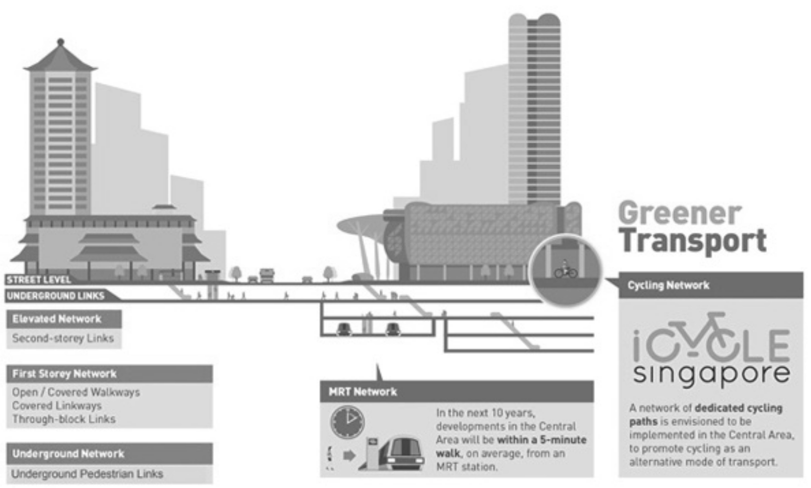 Рис. 3. Генеральный план Сингапура. Схема интеграции транспортных сетей
