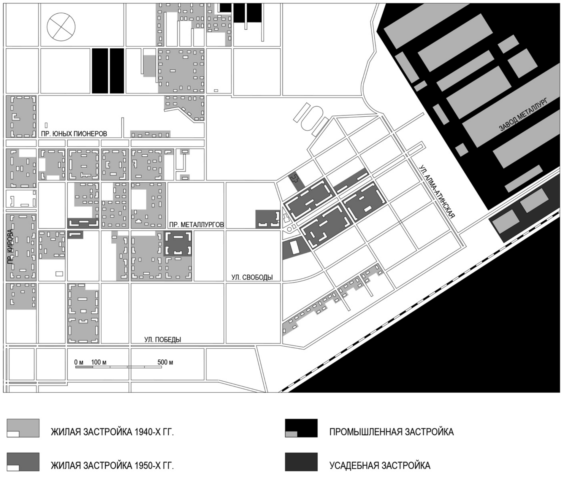 Рис. 3. Периодизация застройки рабочего поселка Металлург