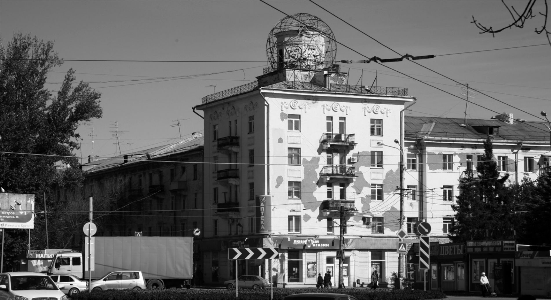 Жилой дом, пр. Металлургов, 80, Куйбышевский филиал Гипроавиапрома, архитекторы В.А. Голосов, Н.Б. Кузнецов, 1953–1957. Жилой 4-5-этажный дом в квартале № 42, 43 на углу улиц Сталинабадской (пр. Металлургов) и Крымской (ул. Марии Авейде) Кировского района г. Куйбышева строился для работников завода п/я 630. При проектировании частично был использован проект дома по ул. Победы в квартале № 718–719, выполненный архитектором Н.Б. Кузнецовым. Здание проектировалось 4-этажным, на углу улиц Сталинабадской и Крымской предусматривалось повышение до пяти этажей. В доме запроектировано 67 квартир, в первом этаже – два ателье (верхней одежды и модельной обуви) и районное отделение связи. При рассмотрении проекта архитектурной комиссией при начальнике Отдела по делам архитектуры Куйбышевского горисполкома было рекомендовано изменить планировку этажей над проездом, увязать фасад по ул. Сталинабадской с фасадом по ул. Крымской (обработка наличников окон 4-го этажа), «сильнее решить» верх эркеров и въездную арку за счет архитектурного оформления. Проект был утвержден отделом экспертиз Министерства авиационной промышленности 12 сентября 1953 г. В процессе строительства, которое вело СМУ № 3 треста «Металлургстрой», в проект были внесены изменения по отделке фасада в связи с постановлением о ликвидации излишеств. Разрешение на производство работ было выдано 10 апреля 1957 г., сооружение здания начато в ноябре 1955 г. 29 июня 1957 г. приемочная комиссия горисполкома подписала акт приемки в эксплуатацию каменного 4–5-этажного дома из 8 секций с 67 квартирами [5, 15].