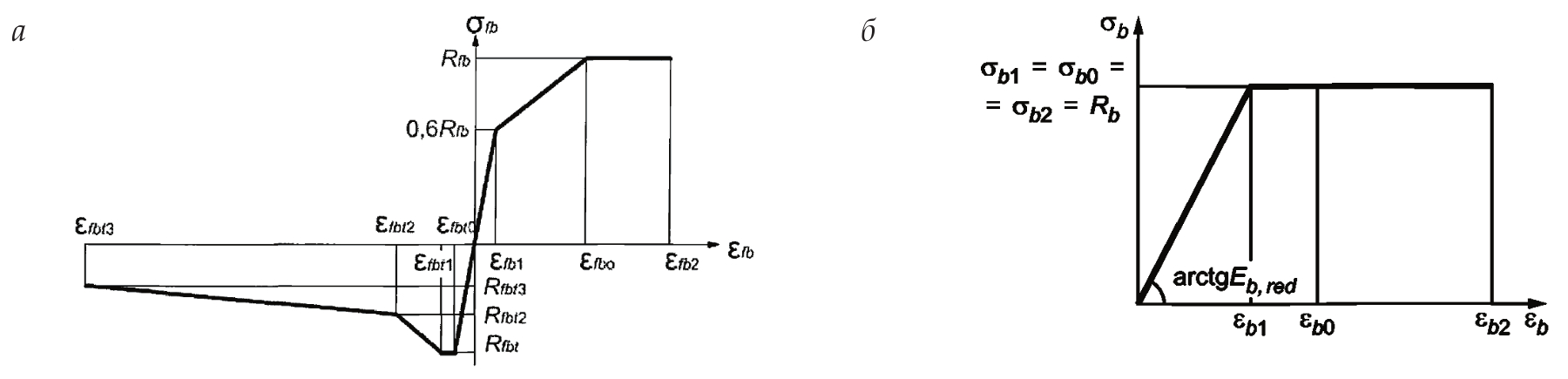Fig. 1. Deformation models: a, fiber-reinforced concrete; b, concrete