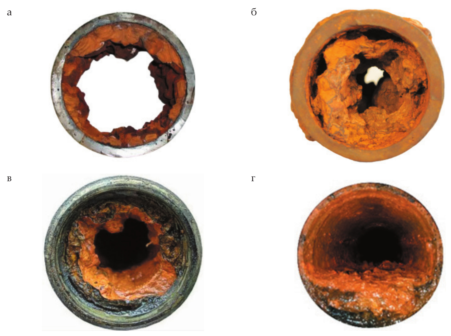 Рис. 1. Фрагменты внутренних отложений на стенках металлических труб: