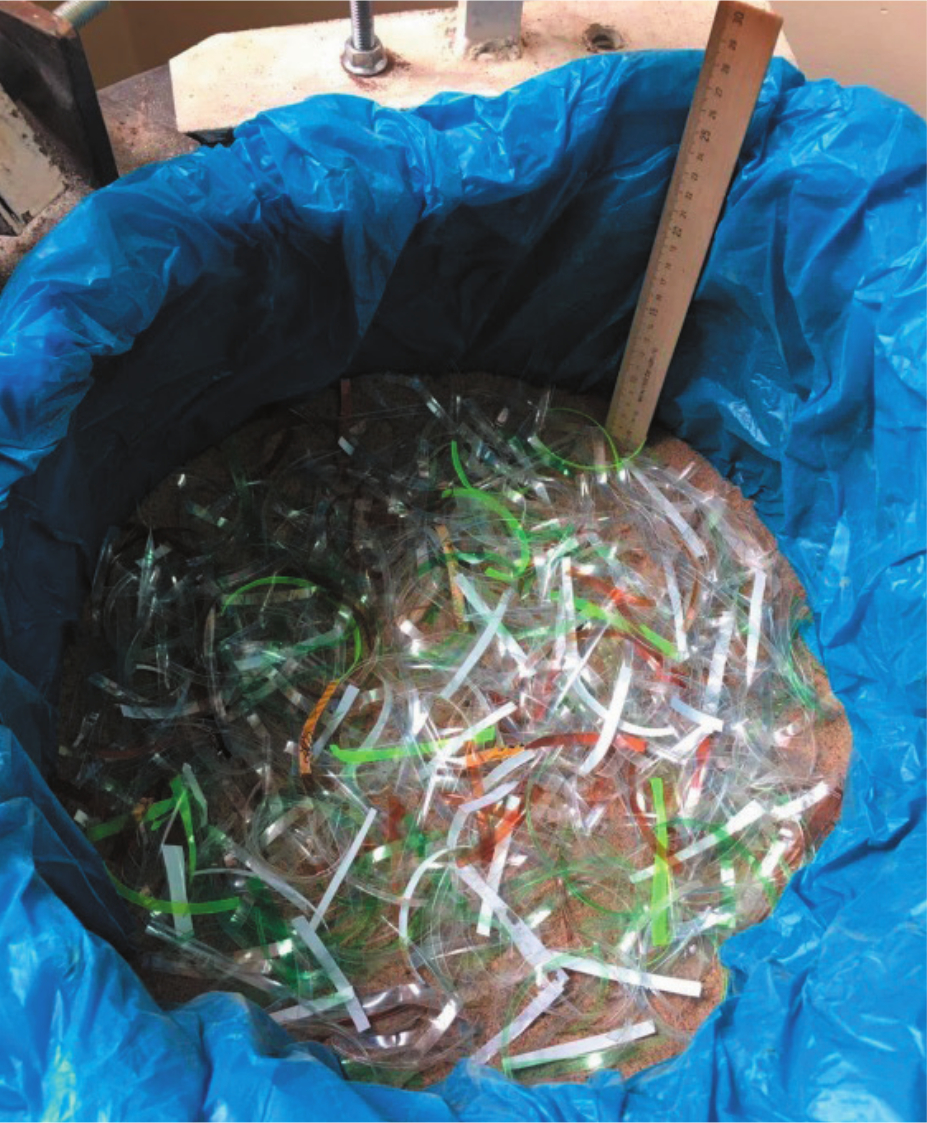 Рис. 2. Процесс смешивания грунта с полосками полиэтилентерефталата
