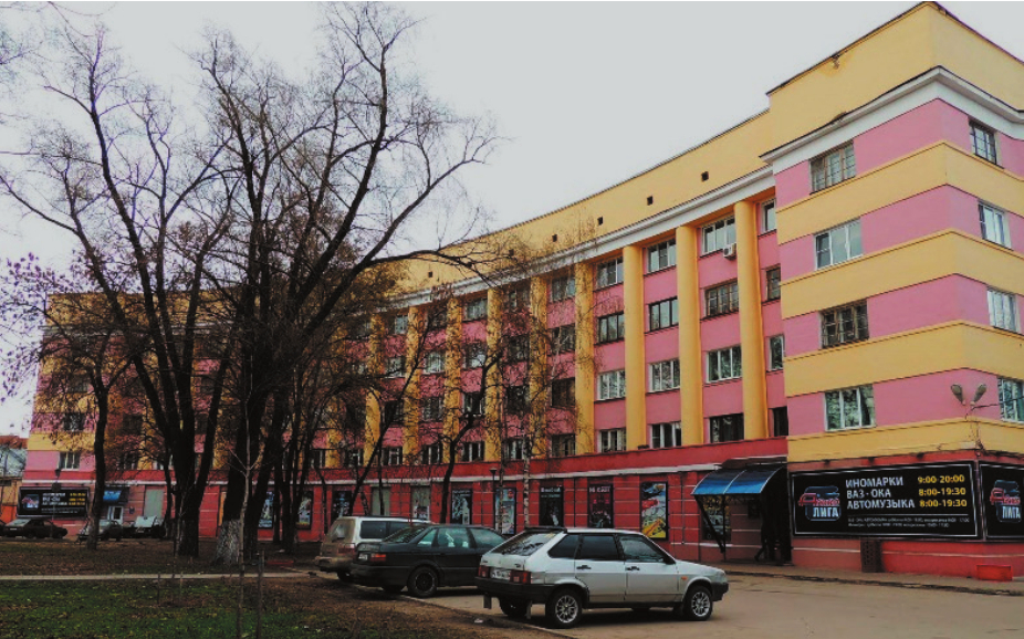 – пристройка к 52-квартирному жилому дому, выполненному по проекту Ливанова (1953–1959), клуб машиностроителей завода Ивтекмаш по проекту И.Н. Дубова (ул. Ленина, 73; 1955–1957) (рис. 9) [17].