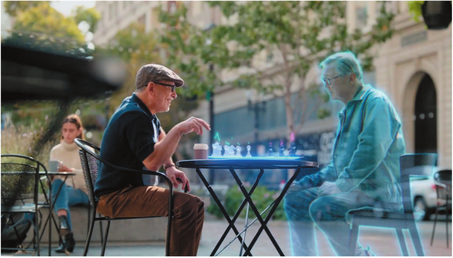 A new layer in the urban environment: The digital layer is perceived through glasses. For example, if I wanted to play chess with a friend, I could find any free table and move virtual pieces around the virtual field. User could upload a street design created by another user and now instead of a gray fence you look at an animated painting. Creating content and making it easier to influence the environment around you is another plus. Influencing space on the virtual layer is the realization of the values inherent in civic activism and participatory design – in order to feel like residents and owners of their area, city and people take part in its development (Pic. 2).