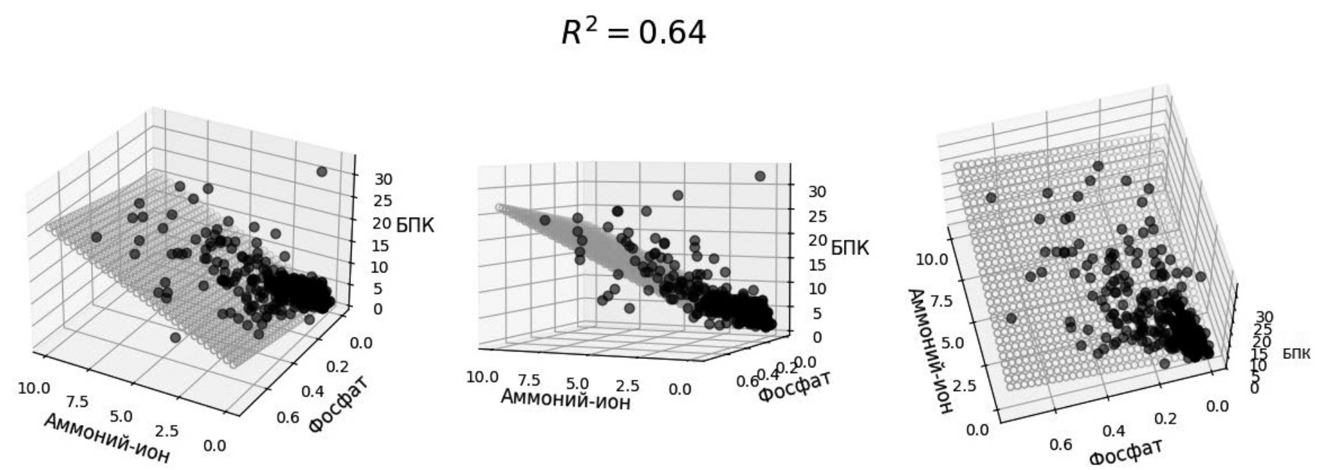 Рис. 3. Модель линейной регрессии зависимости концентрации БПК от концентраций аммоний-иона и фосфата