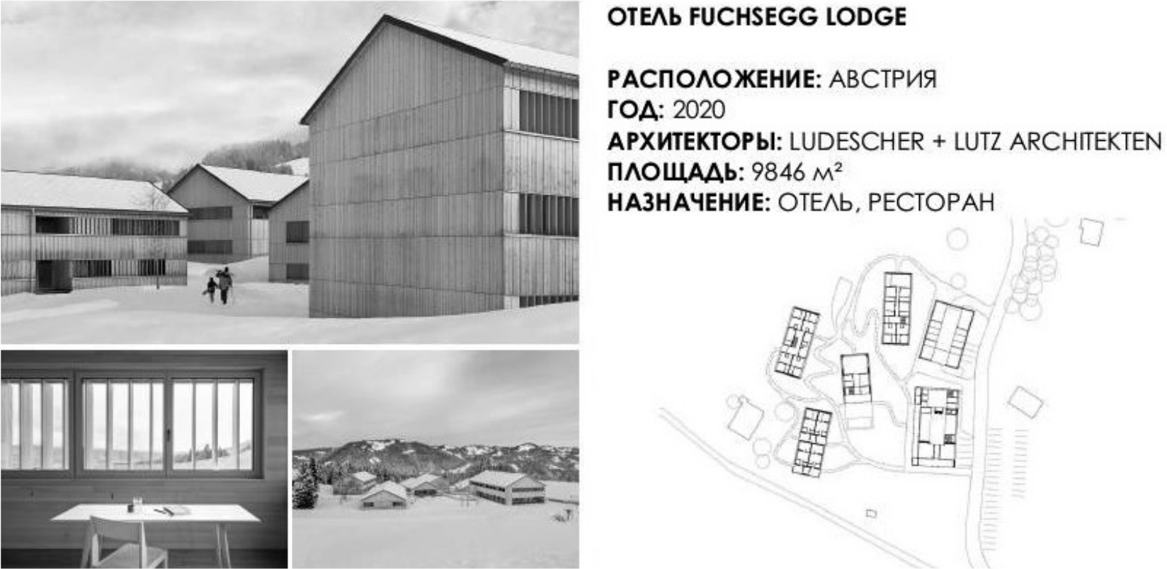 - Hotel Fuchsegg Lodge. Available at: https://www.archdaily.com/967750/fuchsegg-lodge-hotel-ludescher-plus-lutz-architekten?ad_source=myarchdaily&ad_medium=bookmark-show&ad_content=current-user (accessed 10 October 2022).