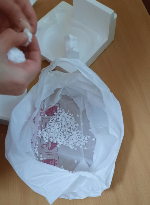 Рис. 2. Разделение пенополистирола на отдельные гранулы