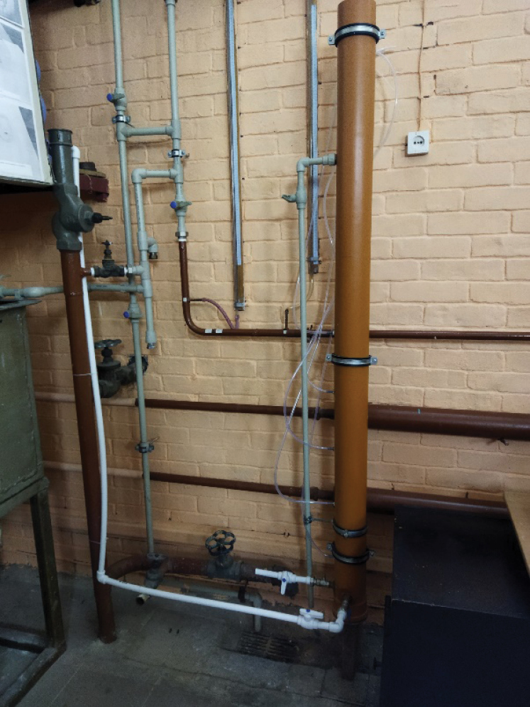 После монтажа фильтровальная установка заполнялась водой и проходила гидравлические испытания на воду (показавшие течь в области дна установки и в местах присоединения врезки трубопровода для опорожнения, врезки трубопровода подачи воды на фильтрование). При этом на установке было отмечено поэтапное прохождение слоев загрузки, появление уровня воды в пьезометрах, начиная с нижнего. При прохождении верхней границы фильтра вода встречается с предварительно подготовленным препятствием в виде пластикового торцевого круга с отверстиями перфорации меньше, чем диаметр зерен загрузки. При этом расстояние от верхней границы до трубопровода отвода фильтрата составило 300 мм. Появившаяся вода в трубопроводе отвода фильтрата при гидравлическом испытании не содержала включений пенополистирольной загрузки, что свидетельствовало о функциональном соответствии смонтированной установки и показывало, что предложенная конструкция по защите от выноса фильтровальной загрузки работает должным образом и все отверстия выполнены корректно.