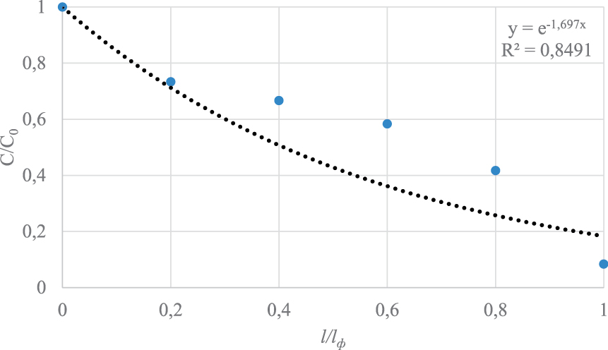 2. Выполнено моделирование процесса очистки на фильтровальной установке с плавающей фильтрующей загрузкой (пенополистиролом) на искусственно замутненной воде, имитирующей воду Северо-Крымского канала.