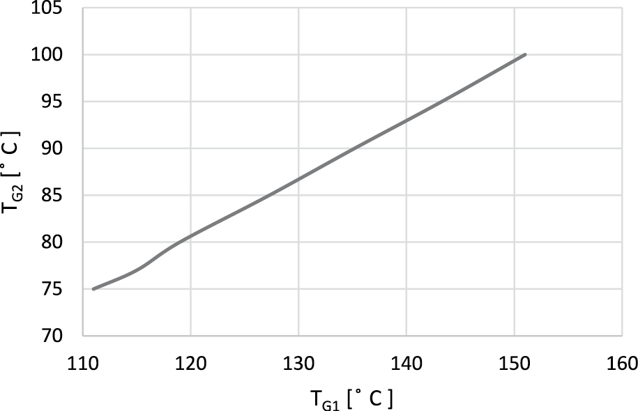 Fig. 5. Change in temperature of the secondary generator depending on the change in temperature of the main generator