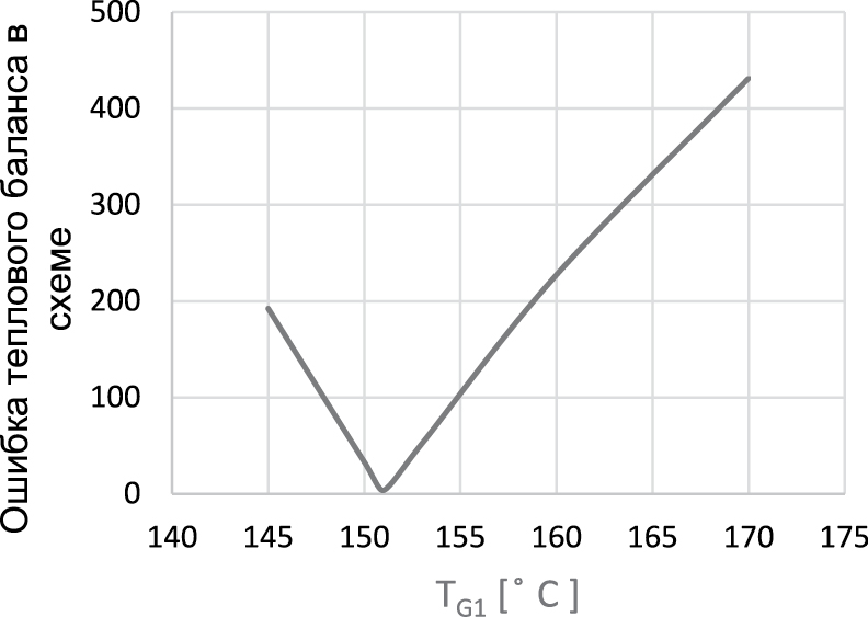 По результатам расчета видно, что кривая сначала уменьшается, пока не достигнет предельной точки, с ошибкой теплового баланса, равной нулю, после чего ошибка снова увеличивается. Таким образом, в данной точке устанавливается рабочая температура вторичного генератора, как показано на рис. 6, следовательно, изменение температуры зависит от основного и вторичного генераторов.