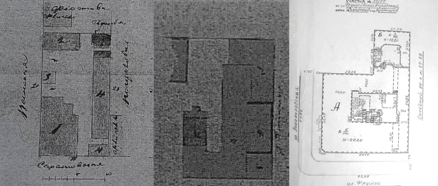 Рис. 2. Генплан домовладения. 1870-е, 1900-е, 1980-е гг.