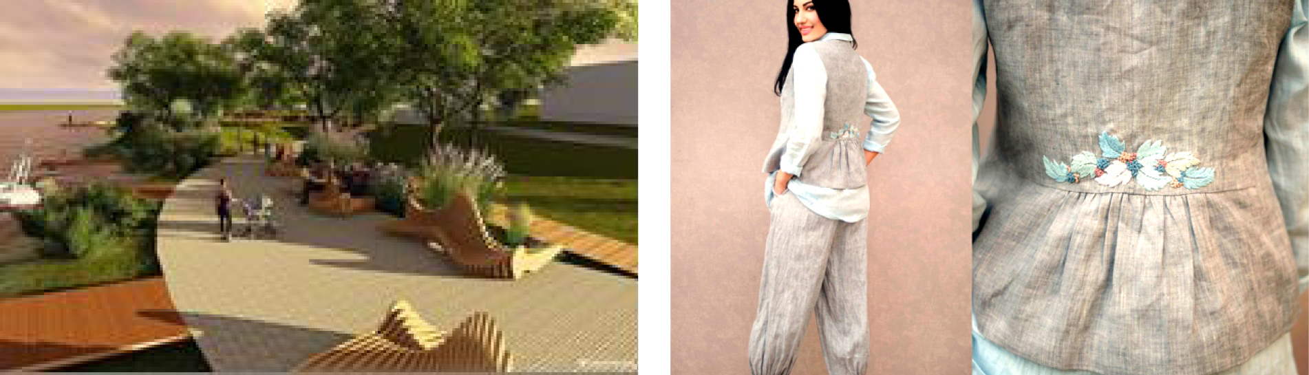 Fig. 1. Examples of urban space design and clothing design, formed under the influence of the urban principle of balance with nature