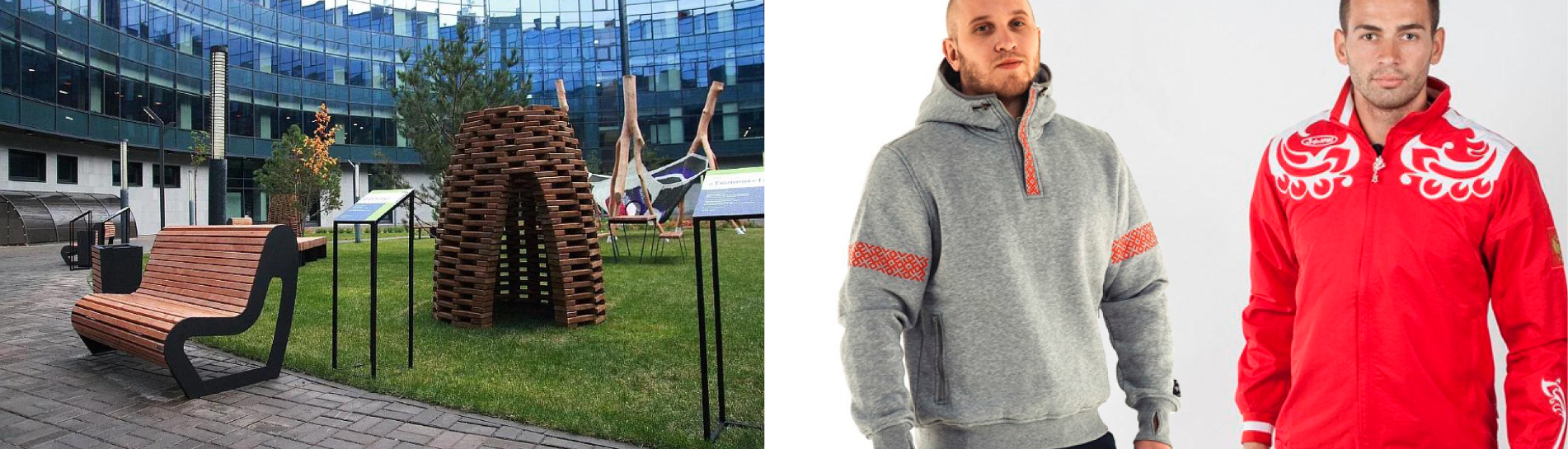 Рис. 2. Примеры дизайна городского пространства и дизайна одежды, сформированные под влиянием урбанистического принципа поддержки культуры и традиций