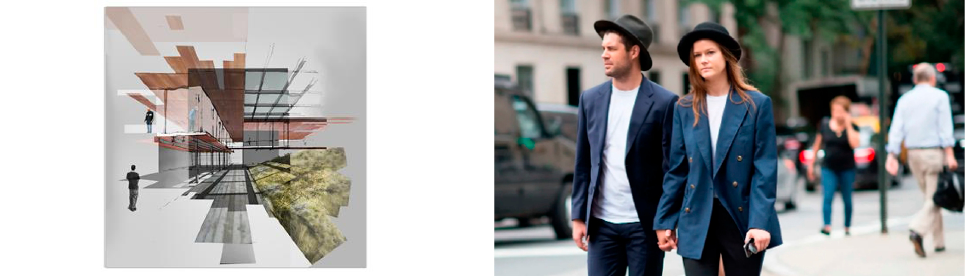 Рис. 5. Примеры дизайна городского пространства и дизайна одежды, сформированные под влиянием урбанистического принципа создания матрицы возможностей