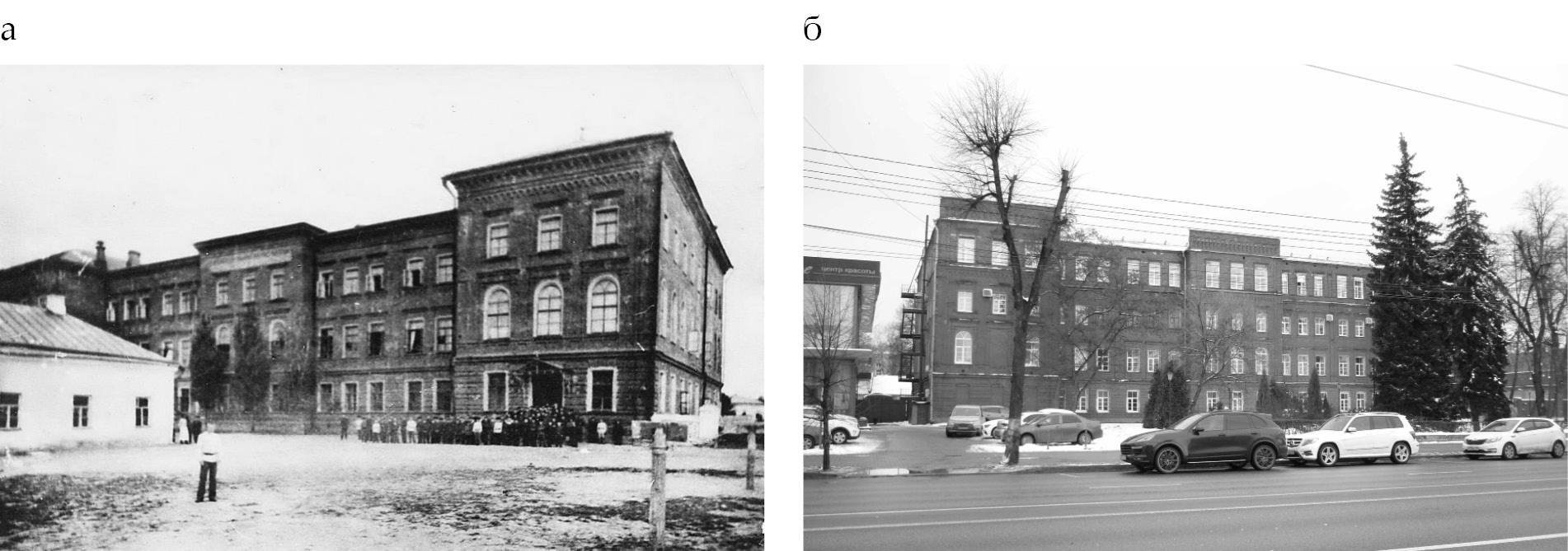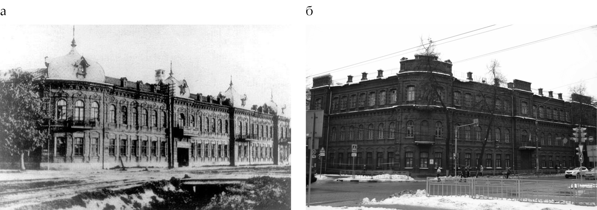 Рис. 2. Духовное училище, г. Воронеж, пр-т Революции (б. Большая Дворянская), 24: а – архивное фото нач. XX в.; б – современное фото Е.А. Чернышевой, декабрь 2020 г.