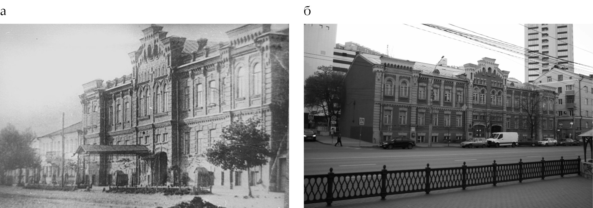 Рис. 5. Училище для слепых детей, г. Воронеж, ул. Плехановская (б. Большая Московская), 29: а – архивное фото нач. XX в.; б – современное фото Е.А. Чернышевой, декабрь 2020 г.