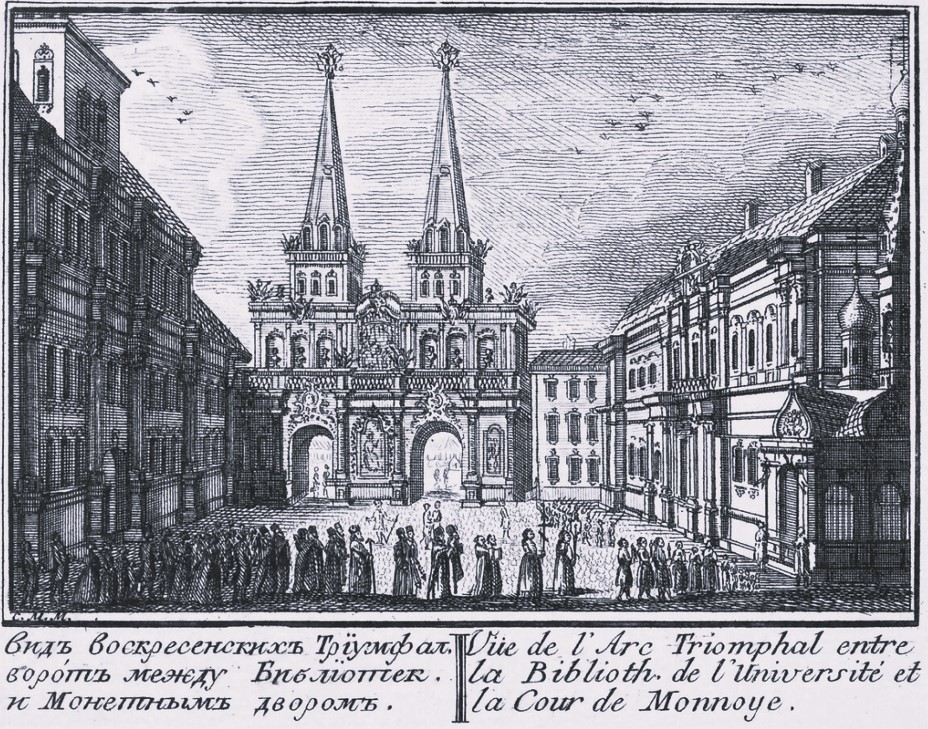 Fig. 4. Passage of the Vokresen Gate (1762). On the right is the Mint building. Artist M.I. Makhae